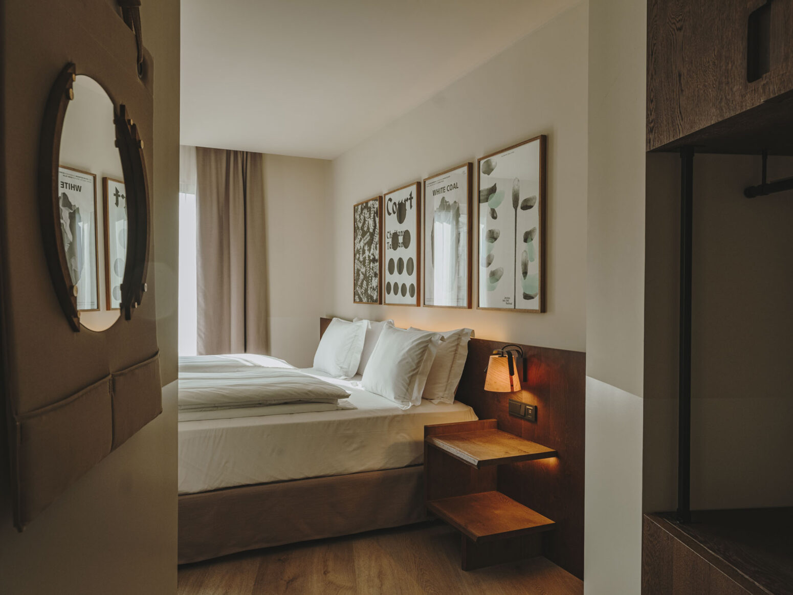 Inspired by a hotel house, the layout centres around a stone-clad staircase with authentic paintings and a restored railing, topped with a skylight that fills the space with natural light. The hotel’s essence is to make visitors feel at home, with every detail thoughtfully designed. Rooms range from family-friendly spaces with bunk beds to luxurious suites with freestanding bathtubs offering city views. The rooftop restaurant boasts stunning views of Plaza Universitat, with interiors adorned with unique tapestries and ceramic lamps, creating a welcoming and distinctive atmosphere throughout the property.